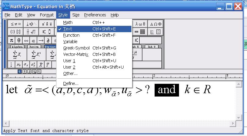 不能在同一mathtype格式,你们的都是把 and 放在mathtype里, 我的问题是一段文字中间有一个数学公式,但是文字和公式不平行,不美观!继续求帮忙!!!!!