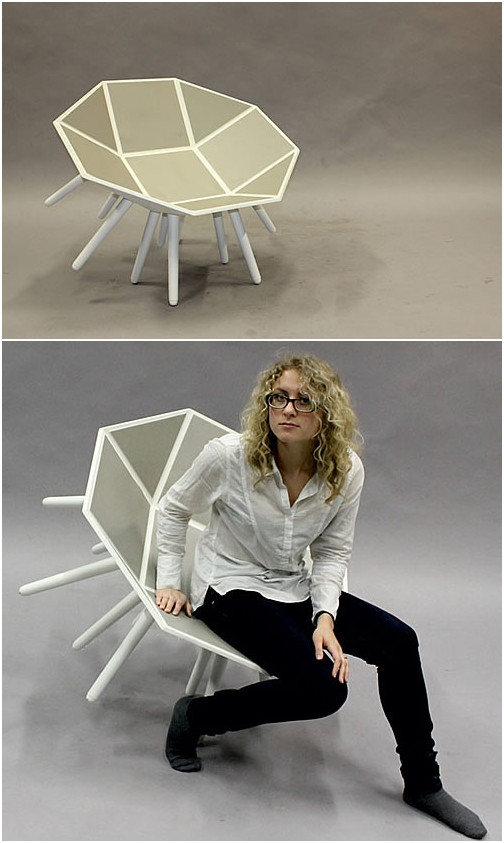 “EKSTramus”一把椅子设计,这外形已经超出了我们常规的椅子概念,可以看到这椅子最多的就是椅脚,有13个椅脚,没有任何特定的就坐方向,如此设计方便随意就坐。