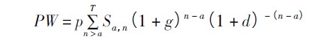 其中,p代表每年养老金收入,已有每个人的收入变量;S(下标a,n)代表a岁的人活到n岁的概率;g为养老金增长率,以固定值0.1计算,d为贴现率,以固定值0.01计算。