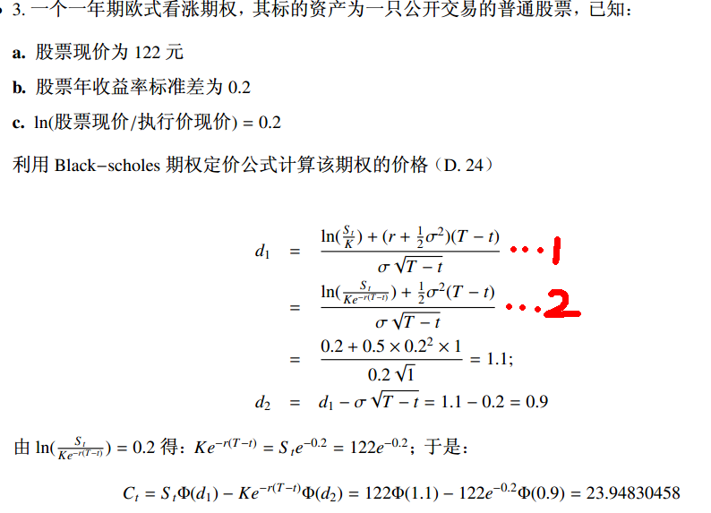 请问大神们,下面这题求期权价格的,d1怎么就能由等式一变成等式二了??BSM模型能这样化简?意义何在?