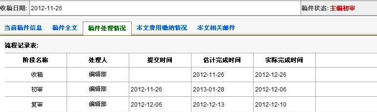 如图,11月26号投的稿子,很快就完成了初审和复审,现在一直是主编初审……