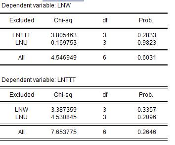 haoyun010 发表于 2013-1-12 19:29 本人认为前两个检验结果表明因果检验的P值都太小,很难验证变量之间存在因果关系。