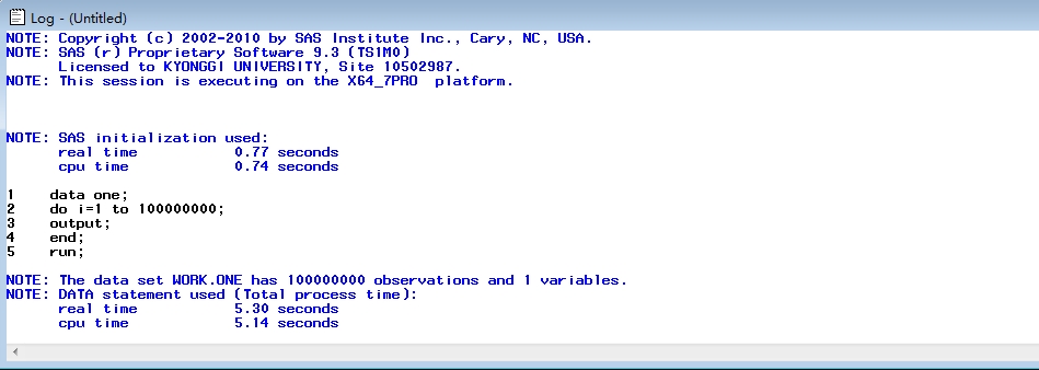 NOTE: The data set WORK.ONE has 100000000 observations and 1 variables.