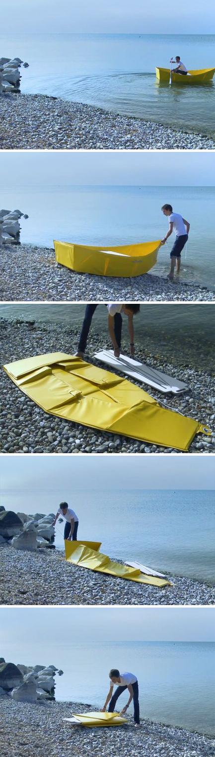 很帅的一只折叠船,折起来小小一块,可以轻松放入后备箱,只需短短时间就可以展开变成一只小船。只是下水需谨慎,驾船需小心哦~ 看起来很脆弱的样子。