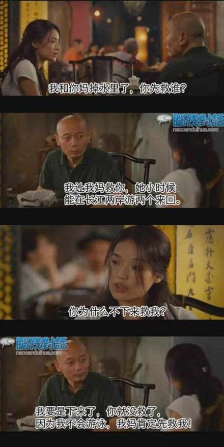 问题六:如果我和你妈妈同时掉进水里,你会救哪一个?Question 6: if I and your mother and fell into the water, who will you save?