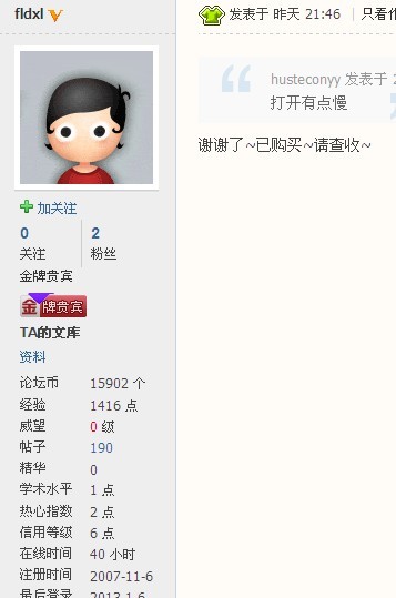 fldxl 发表于 2013-1-6 06:25 谢谢了~已购买~请查收~
