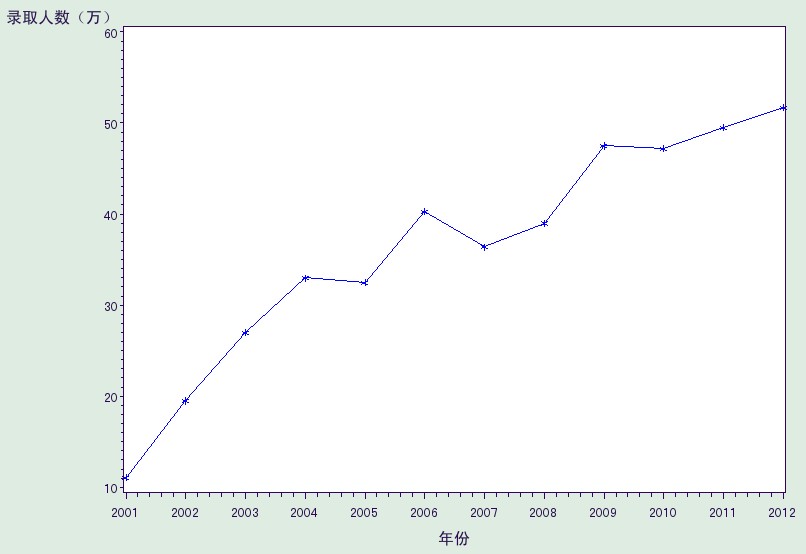 | 黑龙江 | 62061人 | 59941人 | 增幅3.5%,为历年报名人数最多的一年,报考全国统考的考生50933人,推荐免试4044人,单独考试227人,管理类联考5947人,法律硕士联考848人,强军计划62人。 |