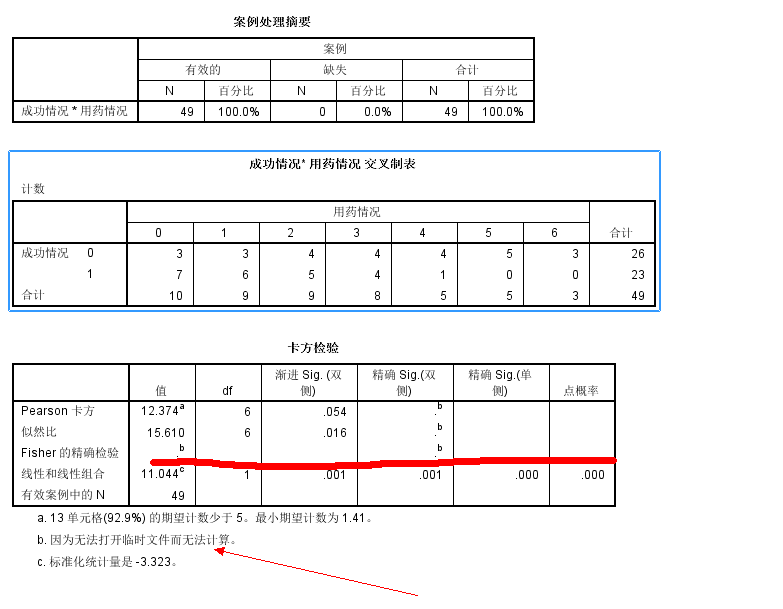 在做一组R×C(2×7)表检验的时候,因为数据量不大,而且多个单元格理论频数太小,所以想采纳Fisher确切概率的值,但是无论怎么做,用spss21版就是算不出来结果,总是提示”