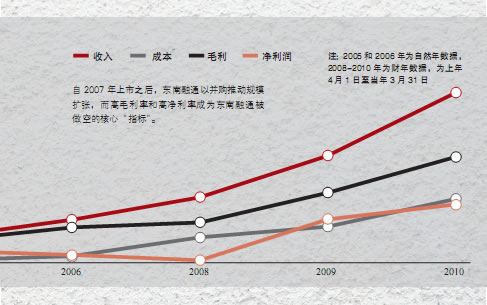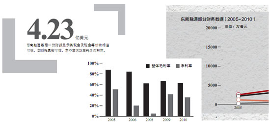 根据东南融通的2010财年财报,其2008至2010财年的毛利率分别为61.1%、65.7%、62.5%。高毛利率成为东南融通被做空的核心“指标”,香橼称,其60%-65%的毛利率高于文思信息、海辉软件等海外上市的同行,惊人的利润率水平值得怀疑,就其员工聘用模式、管理层背景、管理层交易和审计等方面一并提出质疑。