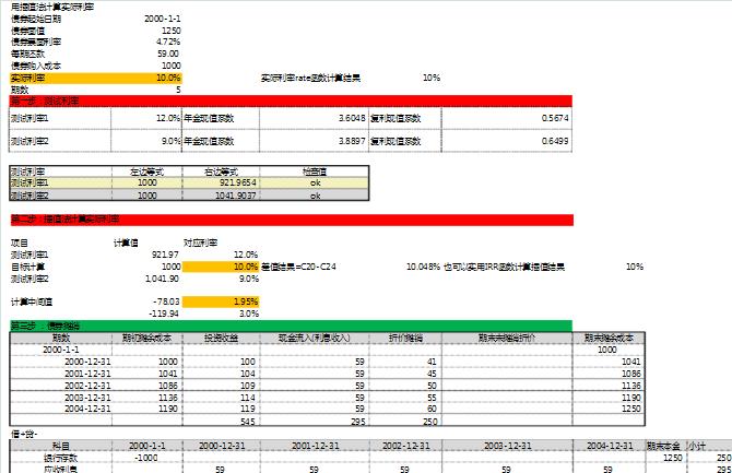 TimeT 发表于 2013-8-11 13:48 用Excel的话,还用得着插值法吗?Excel中有Goal Seek功能,能瞬间算出一个高精度的答案。 插值法算实际利率 ...