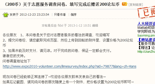 sunpj031 发表于 2013-1-27 22:08 你这是浓反了 下载问卷还有200论坛币