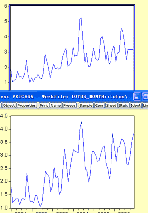 1.由于数据具有月度季节特征,在eviews里做移动平均平滑后还是具有季节特征,如下图. 平滑后的曲线适合用什么曲线拟和呢? 用x12季节调整是否比移动平均平滑好? x12调整后的结果我看不懂.:(