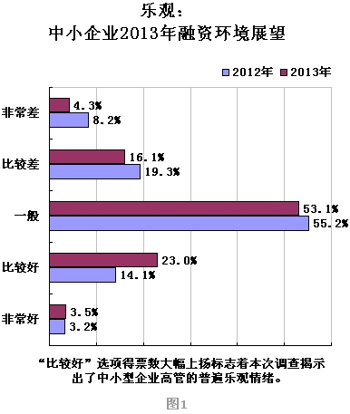 具体分析,其中一个原因或许是——大多数没有过度借贷的中小企业都在2012年复杂的经济大环境中存活下来了。因此,当最艰难的时期已经过去,面对逐渐回暖的经济,中小企业经理人的信心指数也有所回升。