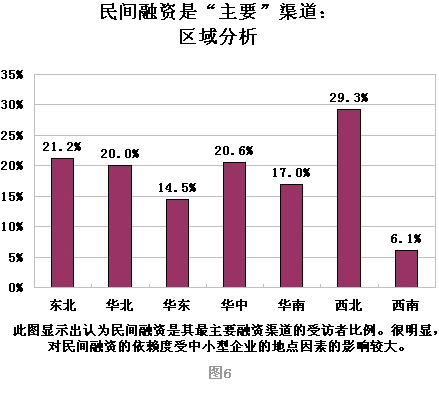 我们首先询问了不同地区的中小企业对民间融资渠道的依赖程度(见图6)。