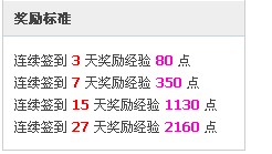 xintianweng107 发表于 2013-2-6 10:28 呵呵,再请教下那如果当中有一天没签到。。是不是就重新计算呢? 另外,连续签到满 27天后,中止签到,再 ...