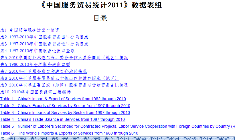 《中国服务贸易统计2011》数据表组