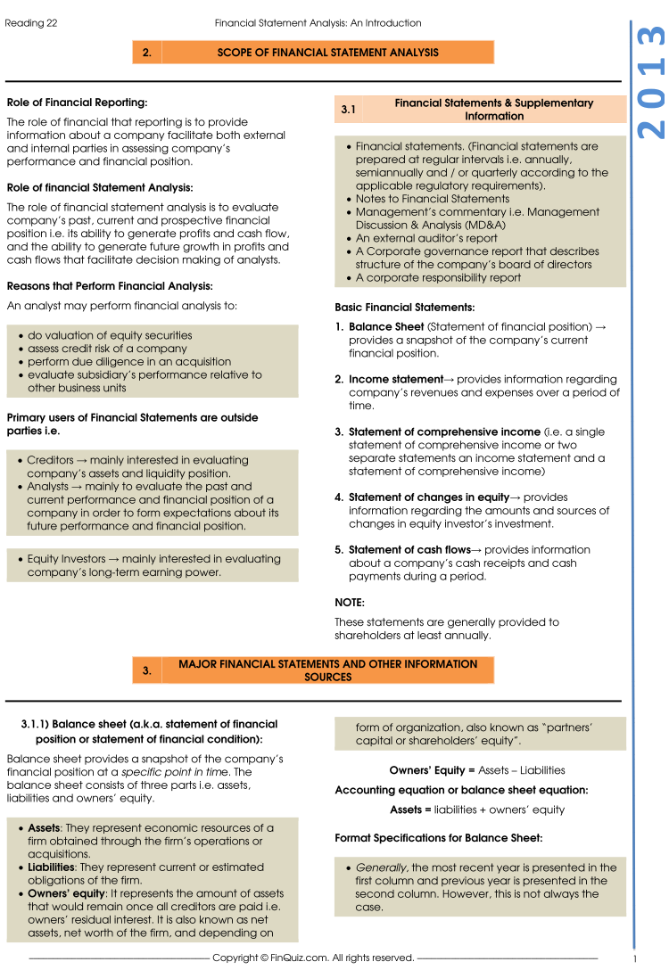 2013 CFA L1 (FSA, Corporate Finace, Portfolio) 讲义,包含了notes里没提到的内容