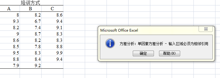 在excel中做单因素分析中,为什么老提示输入区域必须为相邻区域?求大神指点……
