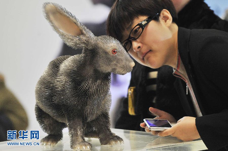 当日,沈阳市一购物中心举办“一件皮草千针万痛”塑像艺术展,展出《狐狸》《貂》《兔子》等12件作品。这些作品是沈阳大学教授解勇和他的36名学生,历时100多天,共使用了大约55万根缝衣针制作而成的。这些塑像的皮毛被缝衣针所代替,象征人们获取皮毛制品给动物带来的苦痛,呼吁人们拒绝皮草,爱护动物。 新华社发(田卫涛 摄)