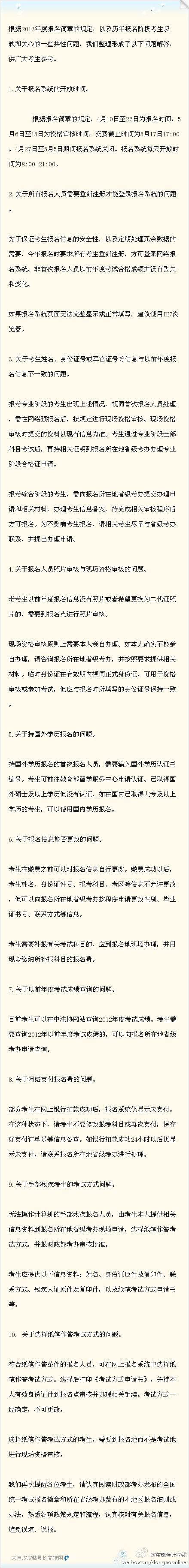 另外,有关2013年注册会计师考试异地报名,我个人给出一个建议,看看是否有可行性。
