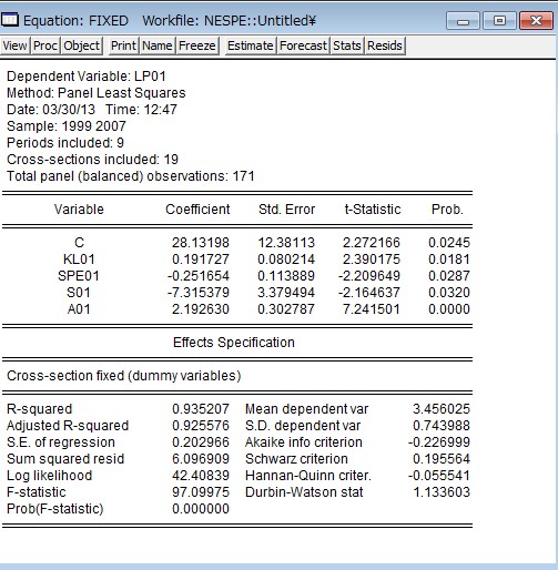 恩 谢谢你的回复 但是我1到3的变量都是每个制造业 比如家具制造业 化学原料制造业的一共是19个分产业 但是第4个和第5个是按地区的 比如东北地区1999年是多少 2000年是多少 这个在Eviews里面怎么加入到方程里呢?