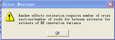 想用eviews做了随机检验,就是radom,但是弹出了这么一个“error message”的框框,瞬间崩溃了,求高人指点是什么意思!!!!!!!!跪谢!!!!!!!