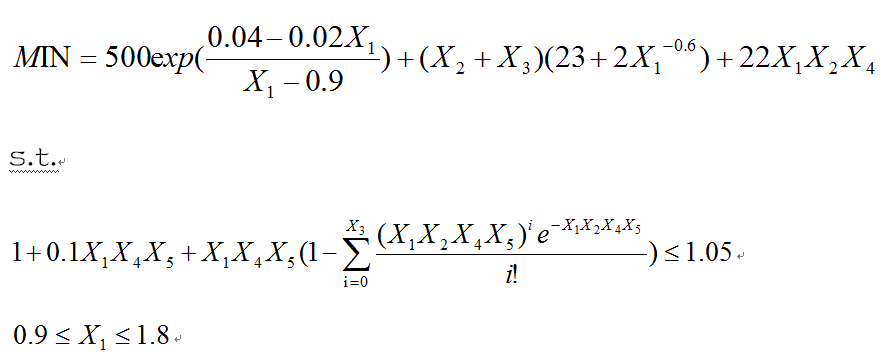 模型如图,五个决策变量,约束条件比较复杂。求教各位高手lingo程序,望不吝赐教,谢谢!