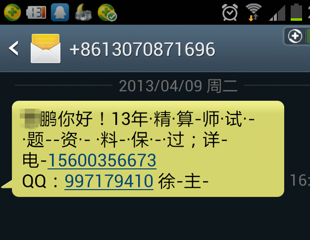 收到买答案的信息我习惯了,今天竟然收到个直呼我名字的
