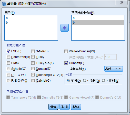 请问我在进行方差分析时遇到无法选择“未假定方差齐次”的方法无法选中的问题,是我的软件有问题吗?