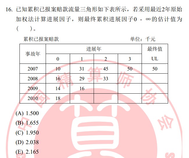 求教 中精2011年非寿险试卷第六题 什么叫最近两年原始加权法啊
