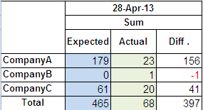 table Company='' all'Total',(A='Expected' B='Actual' diff='Diff')*(sum=''*f=best12.);