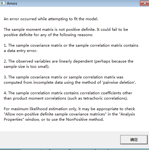 急!!使用amos分析时,出现对数据的警告,无法再接着分析!!