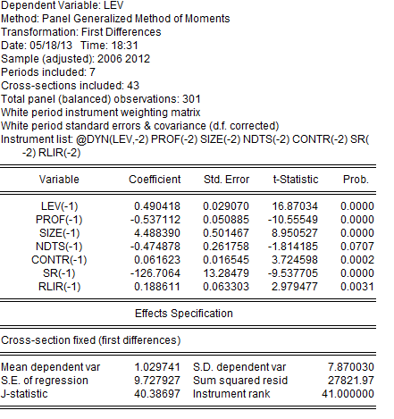 PX0706 发表于 2013-5-19 09:51 你这里面好像只有HANSEN J统计量,而且没有P值,没有SARGAN检验及其P值,没有AR(1)和AR(2)检验,应该也 ...
