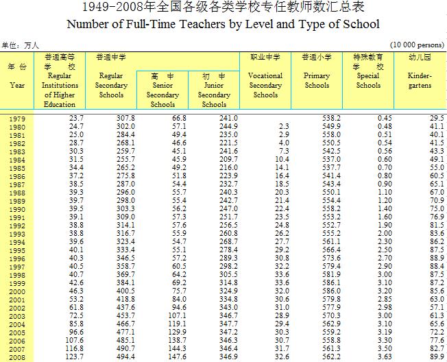 1949-2008年全国各级各类学校专任教师数汇总表.xls