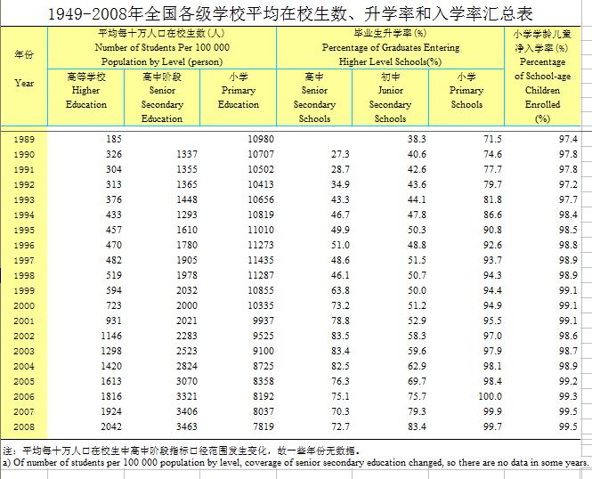 1949-2008年全国各级学校平均在校生数、升学率和入学率汇总表.xls