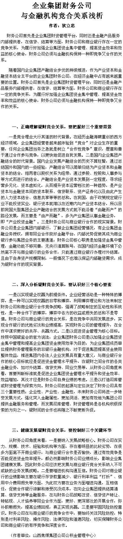 大师坑 发表于 2013-5-20 12:07 作者/狄立忠:1.正确理解银财竞合关系,要把握好三个重要背景,2.深入分析银财竞合关系.要认识好三个核心要素 ...