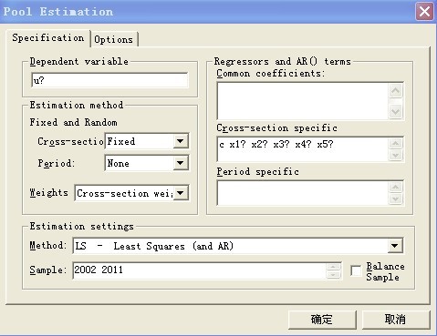 这样填对吗?随机变参数模型没有一个统一的具体模型吗?如果我想得到Xi 跟U的关系该怎么做?谢谢各位~~