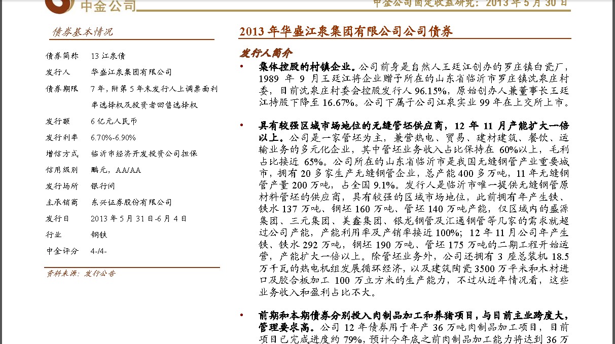 • 非城投江泉债发行人具备一定的区域市场地位,但实际盈利状况一般,未来业绩有增长潜力但仍需观察,投资压
