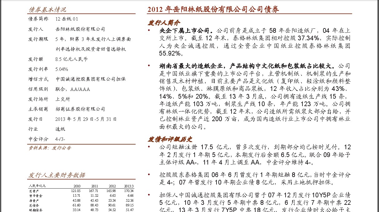 • 公司债中,债项资质最好的是岳纸债,发行人受累于行业景气低迷和费用高企,出现亏损,且债务负担较重,短
