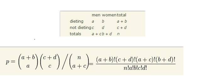 因为fisher检验的原理,是利用超几何分布来计算每一种可能结果出现的概率,对于2X2表格的计算形式如下 ,因此fisher检验适用于观测频数不大的情况。当观测总数n较大,或者对于一般的rXc列表,fisher检验的计算量非常大,以至于无法承受。。。