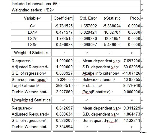 多元方程 用自变量倒数做权数都消不掉异方差,只有用残值平方的倒数才能消除,但出来的结果可决系数都变1了,怎么有种不靠谱的感觉,到底可行么?? 超级急