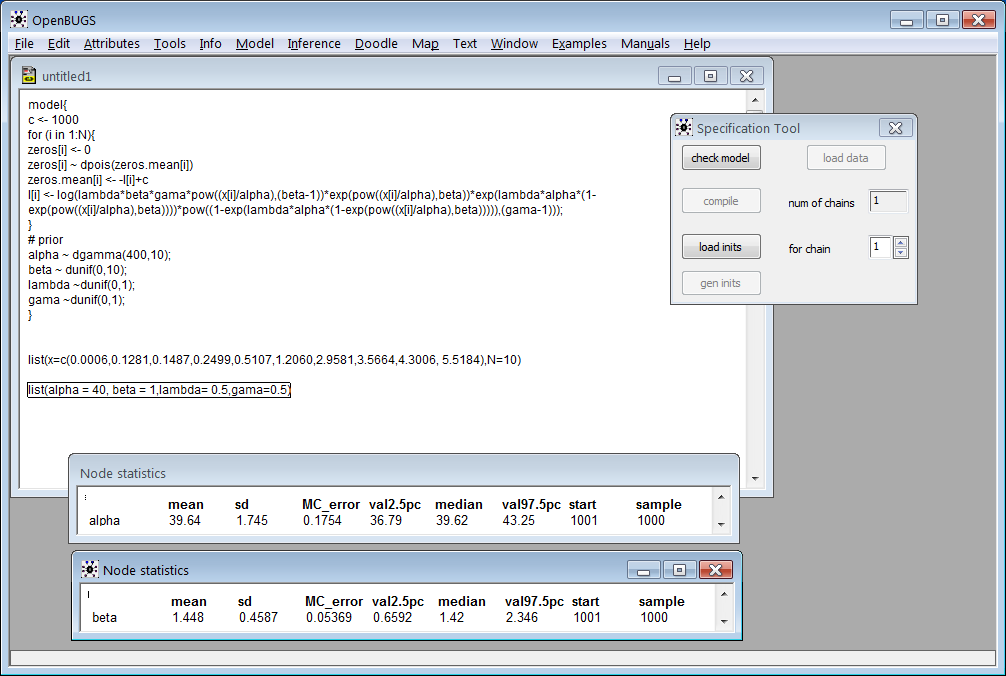 wwwujl 发表于 2013-6-13 20:47 程序没有问题啊, WinBUGS跑不起来, 用 OpenBUGS. 下图是运转1000的截图.
