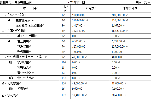 “利润表”所反映的是企业在一定期间内实现的利润或亏损的情况。“本月数”一栏各项目,反映的是本月的实际发生数额;“本年累计数”一栏,反映的是自年初至报告期止累计的实际的发生数额。因为这是本企业当年报出的第一个月的利润表,所以“本月数”就等于“本年累计数”。