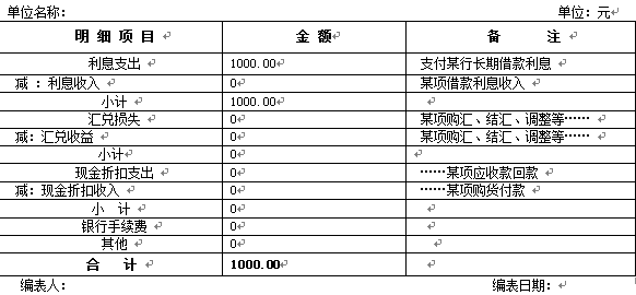 【例4-9】伟业公司在本月发生了借款利息1000元,记入了财务费用账户,填列在利润表中的“财务费用”项目中。企业向金融机构作了贷款,自然要有财务费用的支出。这是伟业公司12月份实际支付的,第四季度的长期借款利息1000元。