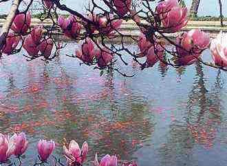 今日花港观鱼是一座占地二十余公顷的大型公园,全园分为红鱼池、牡丹园、花港、大草坪、密林地五个景区。位于公园中部偏南处的红鱼池,是全园游赏的中心区域,池岸曲折自然,池中堆土成岛,池上架设曲桥,倚桥栏俯看,数千尾金鳞红鱼结队往来,泼刺戏水。微风过处,沿池岸花木落英缤纷,飘浮于水面,好一幅“花著鱼身鱼嘬花”的动人画图,无人不起羡鱼之情。