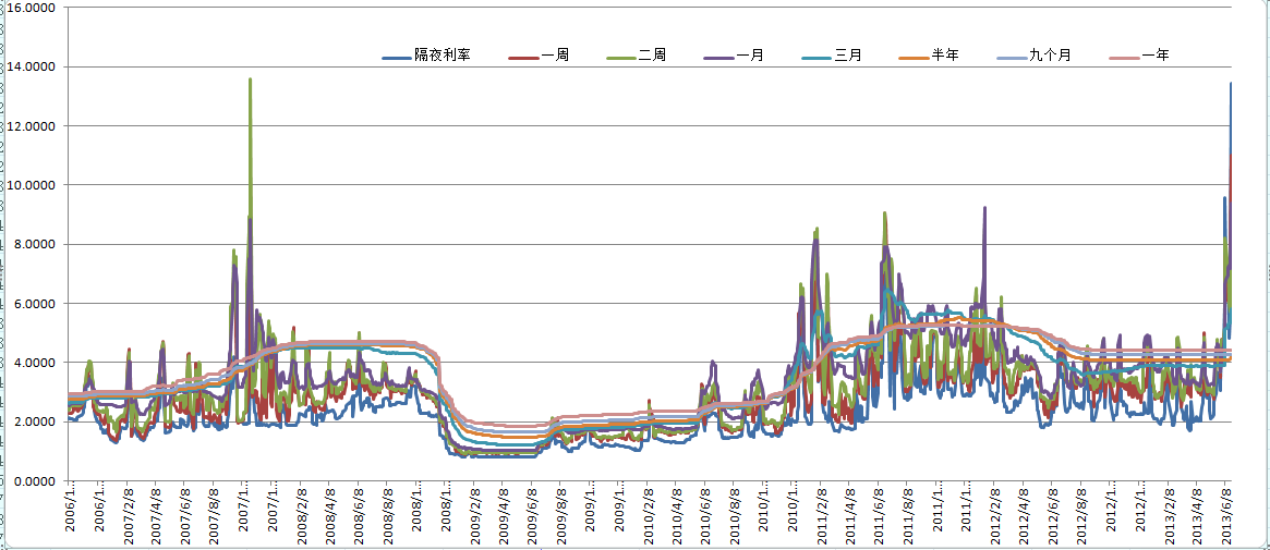 一周以来,上海银行间同业拆分利率(SHIBOR)飙升,意味着银行资金紧缺。但事实如此吗?2013年6月17日,《 人民日报海外版 》载评论文章“热钱离境不会导致市场失血”,从头至尾均表现出,担心金融市场资金缺紧是杞人忧天。《 人民日报海外版 》的评判与SHIBOR迥异。