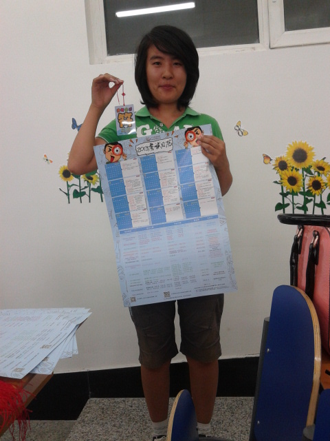 6月24日,早上去取快递,原因是快递包裹太沉,前一天没借到车子推,耽误了拿回的时间。拿回500张2013年找你妹考试日历和逢考必过符。当天上午,在哈尔滨师范大学江北区新教学楼一楼,发放,逢考必过符得到学生的喜爱,当天我院教学徐院长、蒙书记和杨院长均有拿逢考必过符