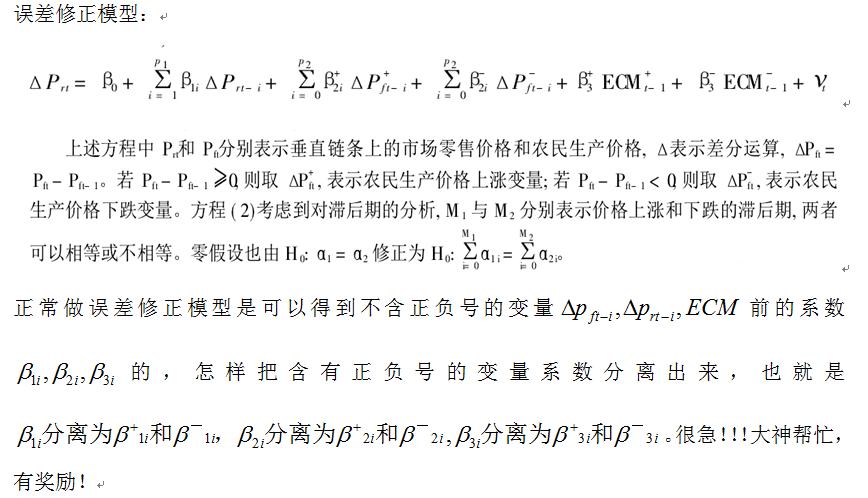 求助,如何用eviews 操作得出误差修正模型(ECM)