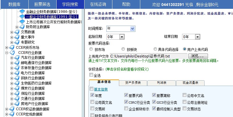 求助:急需CCER数据库上市公司主营业务产品和行业分布数据