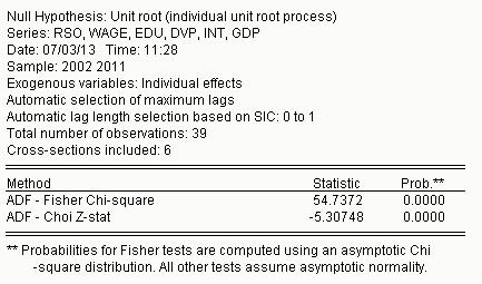 Im, Pesaran and Shin W-stat 2.96251 0.9985 1 9